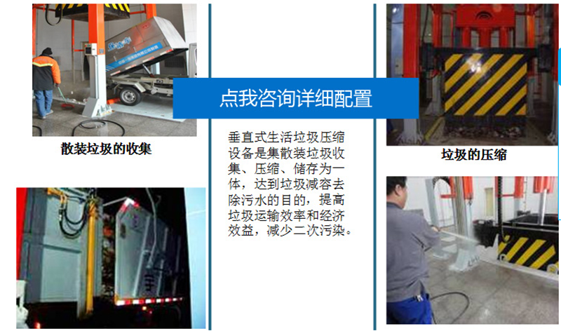 該產(chǎn)品適用于城鎮(zhèn)生活垃圾的儲存、壓縮和轉(zhuǎn)運,通常可設置在靠近街道及居民生活小區(qū)內(nèi),是當今生活垃圾處理的理想設備。