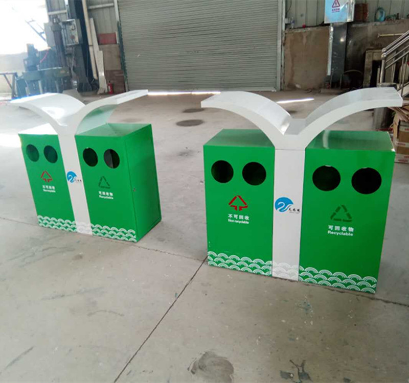 蝴蝶型分類環(huán)保垃圾桶果皮箱采用SMC復合材料,3500噸壓機模壓成型,內外光潔度一致。